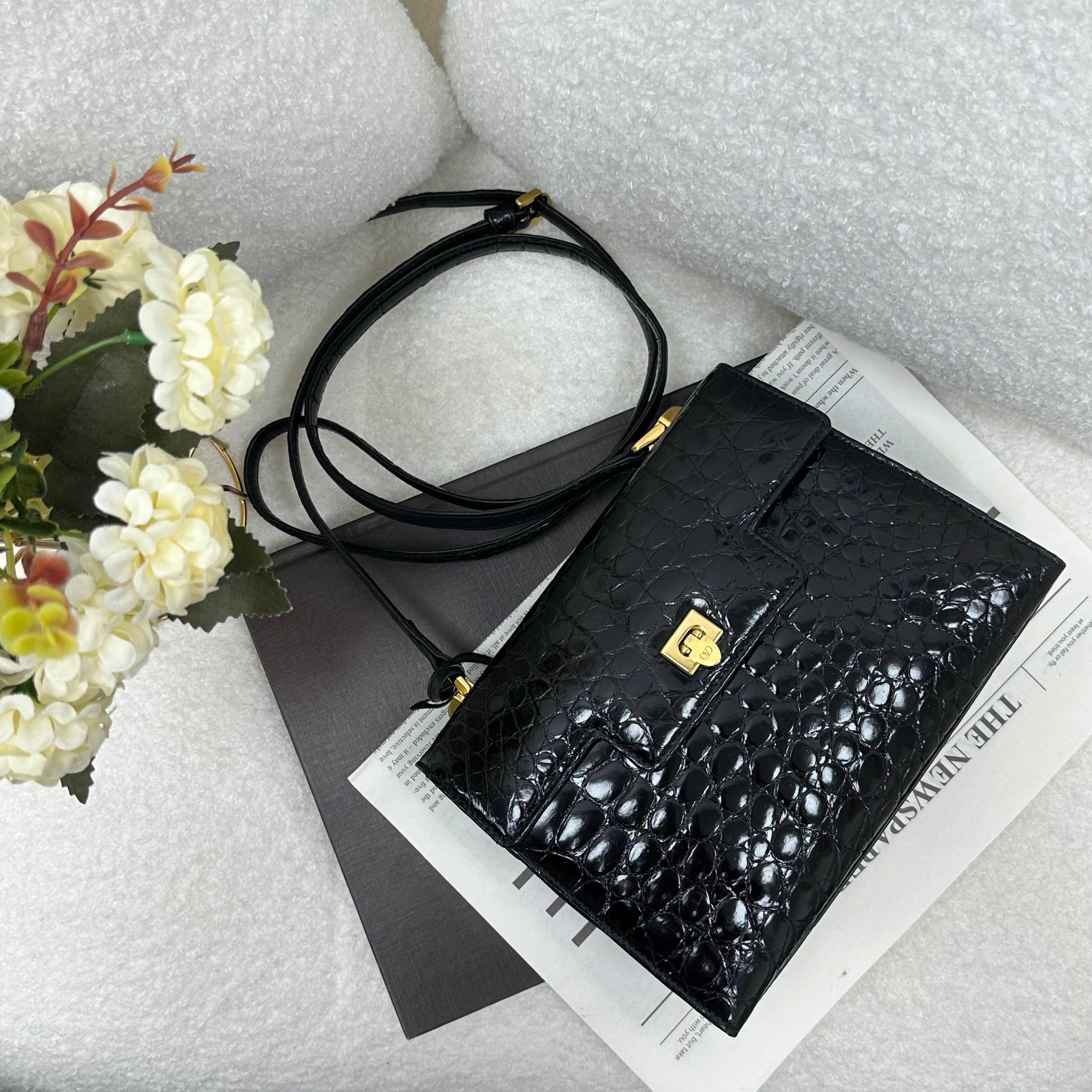 這款 Valentino Garavani 皮件以曜石黑皮革揉合經典金標,展現低調奢華。工藝精湛、觸感細膩,完美詮釋義式優雅與永恆時尚,是品味人士的最佳首選。